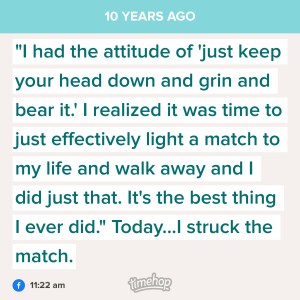 The point of sharing this story is this: if you’re unhappy and waiting to take that next step (for whatever reason), stop waiting. Strike the match on your current existence and just do it. It’s scary and it’s unnerving, but it will be worth it if you’re willing to face the fear. Everything that I have now is because of that move.